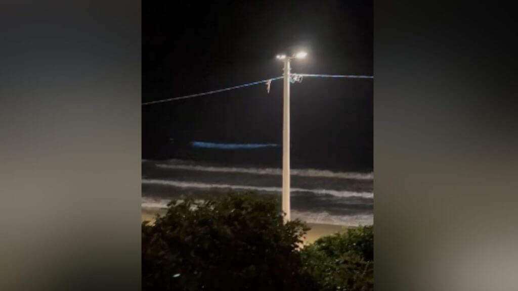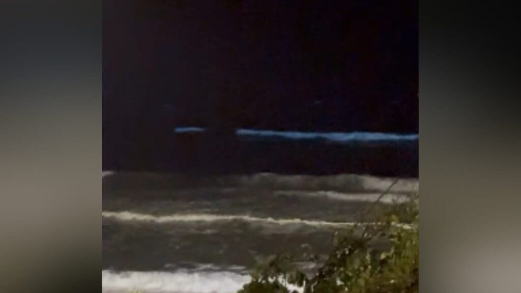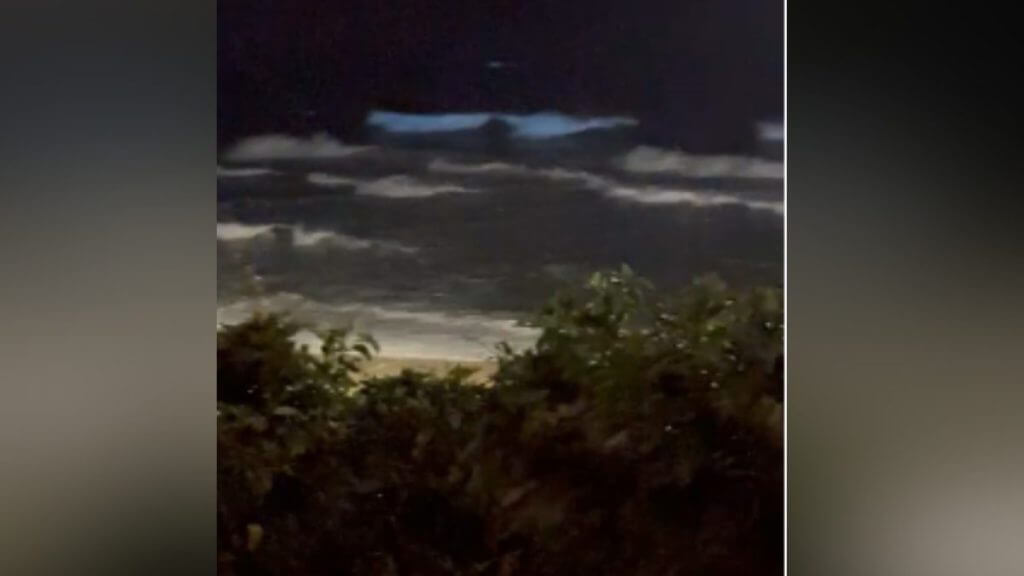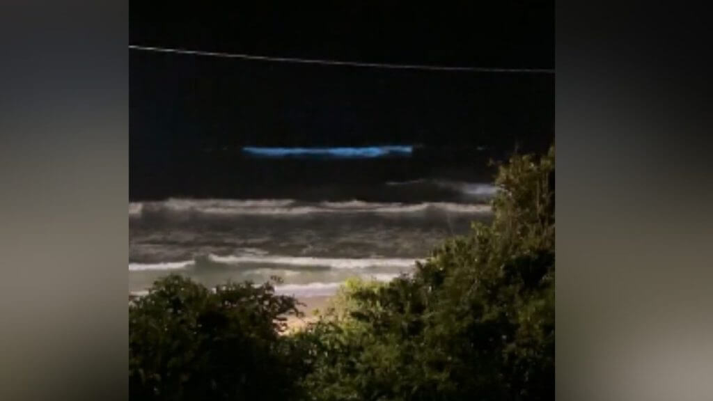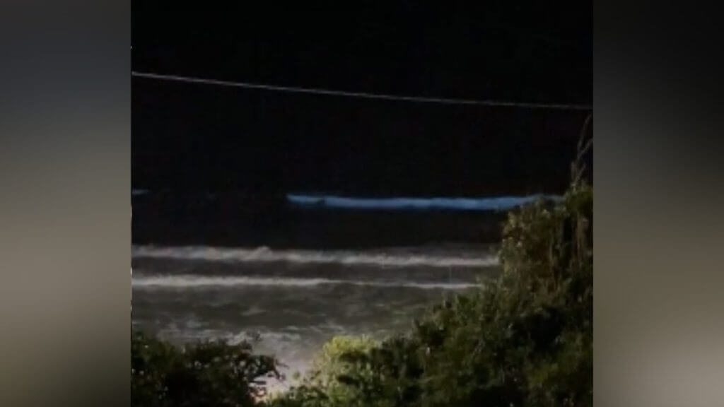 Um vídeo feito pela Maria Antonia Lopes, proprietária e anfitriã de hospedagens na região, flagrou o momento único que ocorre através de reações químicas na água. Nas imagens, é possível ver o brilho se formando no mar quando as ondas batem perto da faixa de areia.